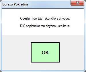 1) EET v systému BORESO ve verzi 3.1.1.1 nepodporuje: