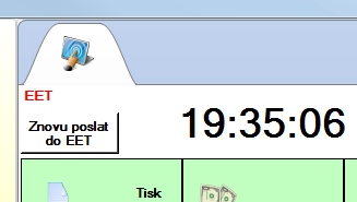 Pokud jsou na pokladně účtenky, které se z jakéhokoliv důvodu (např. nefunkční připojení k internetu) nepodařilo odeslat do EET, je nutné, podle zákona tyto tržby zaslat nejpozději do 48 hodin na server finanční správy znovu. V takovém případě nápis „EET“ u hodin změní barvu na červenou a zobrazí se tlačítko „Znovu poslat do EET“.