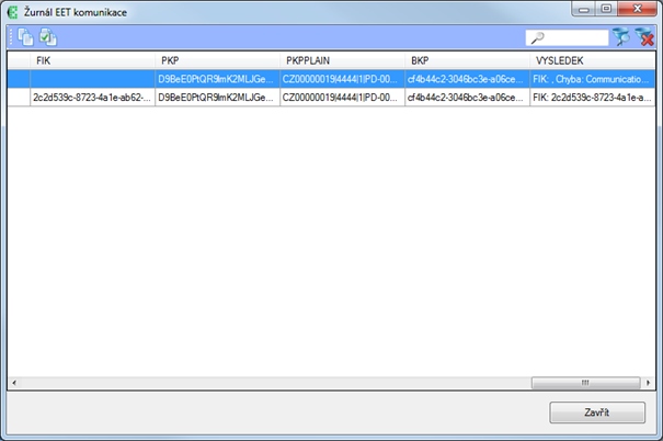 Jakmile je odstraněna příčina chyby (např. už je funkční připojení k internetu), po stisknutí tohoto tlačítka se systém pokusí znovu odeslat všechny problematické účtenky znovu, průběh odesílání se zobrazí v okně, kde v případě neúspěchu vypíše vrácenou chybu a v případě úspěšného odeslání zobrazí u dané účtenky „OK“.