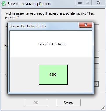 V případě úspěchu se zobrazí hláška "Připojeno k databázi", kterou potvrdíme.